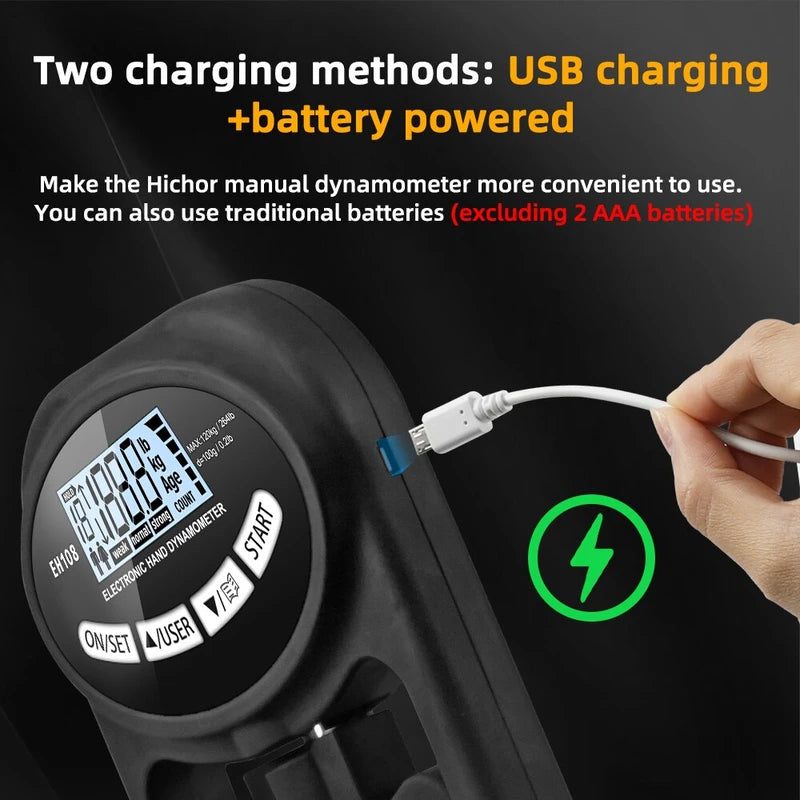 Digital Hand Grip Strength Tester 120Kg / 265Lbs, USB Dynamometer Meter with LCD Screen for Sport Power Training